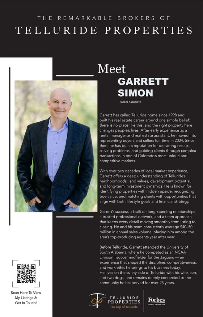 19 Feb Meet the Remarkable Brokers of Telluride Properties: Garrett Simon Posted at 19:52h in Real Estate, Travel by admin 0 Comments 0 Likes Tags: Luxury Lifestyle, Luxury Real Estate, Mountain Homes, Telluride Colorado