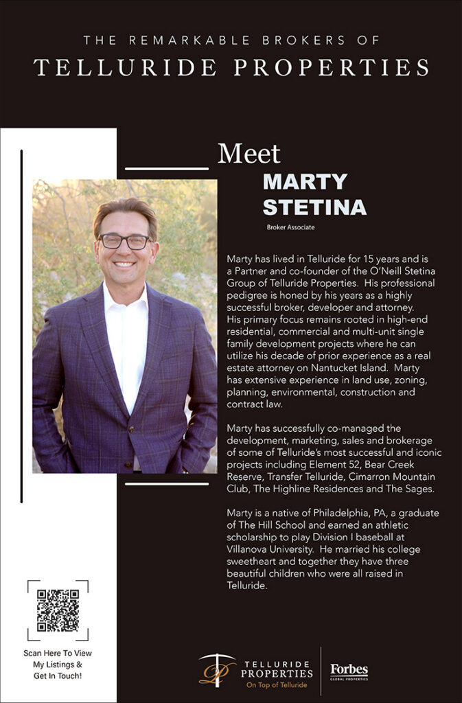 03 Aug Meet the Remarkable Brokers of Telluride Properties: Marty Stetina Posted at 19:12h in Real Estate, Travel by Kimberly Corrigan 0 Comments 0 Likes Tags: Luxury Lifestyle, Luxury Real Estate, Mountain Homes, Telluride Colorado