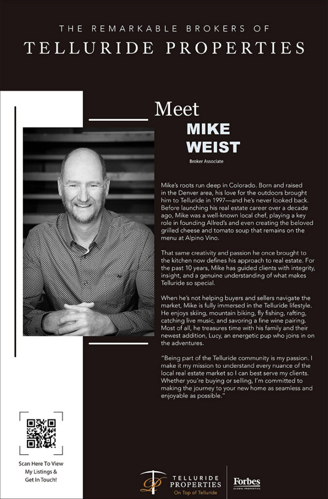 12 Feb Meet the Remarkable Brokers of Telluride Properties: Mike Weist Posted at 19:48h in Real Estate, Travel by admin 0 Comments 0 Likes Tags: Luxury Lifestyle, Luxury Real Estate, Mountain Homes, Telluride Colorado