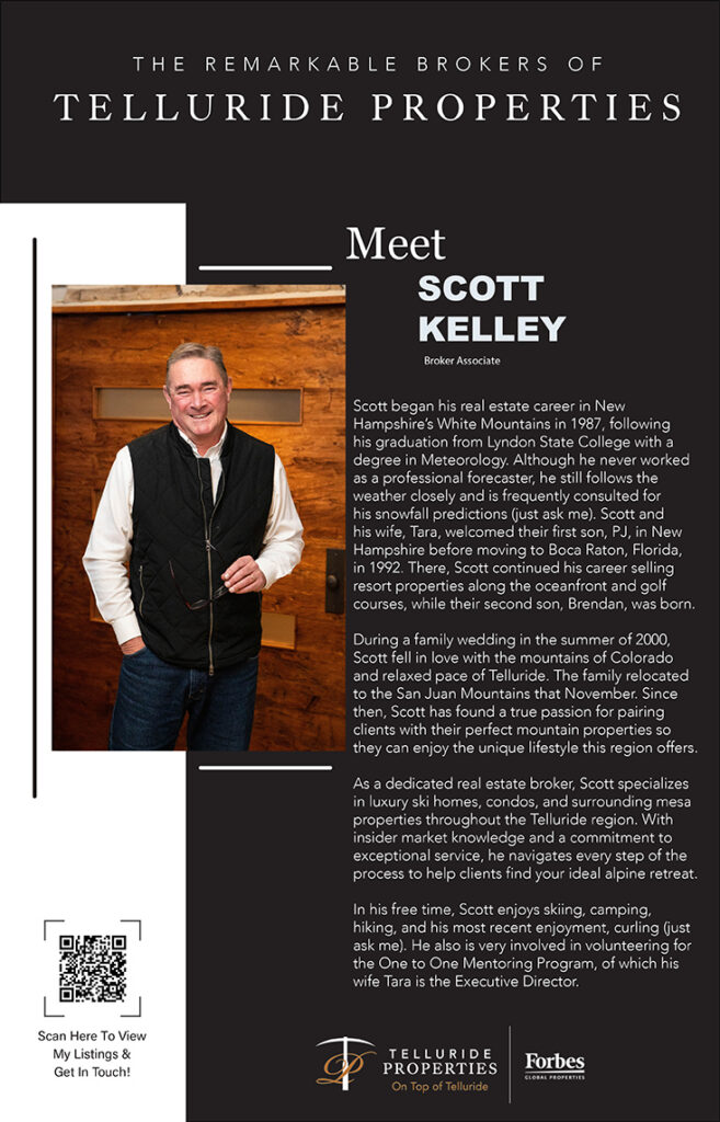 22 Jan Meet the Remarkable Brokers of Telluride Properties: Scott Kelley Posted at 19:29h in Real Estate, Travel by admin 0 Comments 0 Likes Tags: Luxury Lifestyle, Luxury Real Estate, Mountain Homes, Telluride Colorado