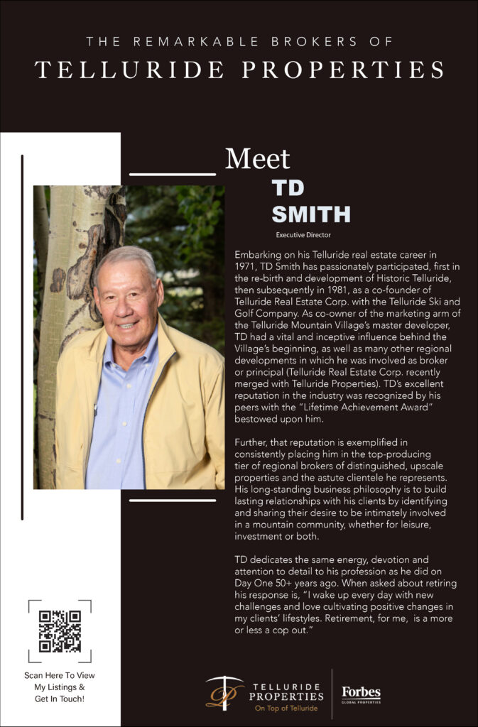 20 Jul Meet the Remarkable Brokers of Telluride Properties: TD Smith Posted at 19:00h in Real Estate, Travel by Kimberly Corrigan 0 Comments 0 Likes Tags: Luxury Lifestyle, Luxury Real Estate, Mountain Homes, Telluride Colorado