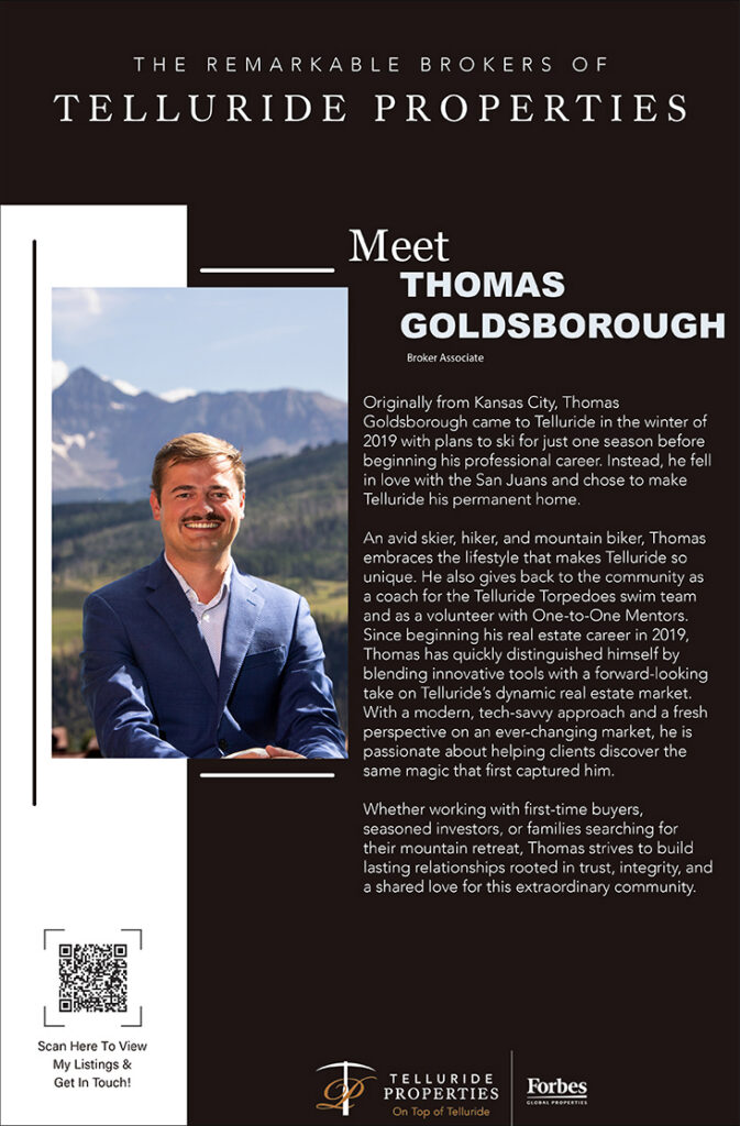 05 Oct Meet the Remarkable Brokers of Telluride Properties: Thomas Goldsborough Posted at 20:35h in Real Estate, Travel by admin 0 Comments 0 Likes Tags: Luxury Lifestyle, Luxury Real Estate, Mountain Homes, Telluride Colorado